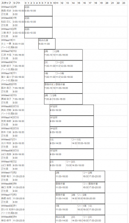従来のシフト表の並びによる表示に加え、勤務開始時刻順に並べて表示することができます