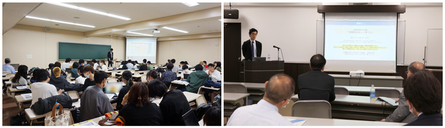 ▲(左)【奈良大学様】産学連携特別講義の様子 / (右)【一般社団法人新宿間税会様】税務研修会 社史作成&活用講座の様子