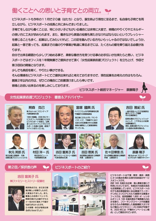 首都圏・中部地方にサービスオフィス「ビジネスポート」を展開する株式会社Buil-netフロンティア(代表取締役 熊森克己)が、地域活性化に向け女性起業家を応援するプロジェクトを7年ぶりに再始動します。