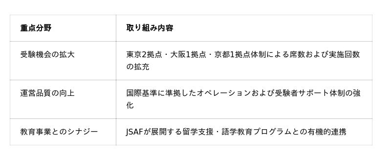 本移行により、日本国内のJSAFによるIELTS運営は以下の分野で強化されます。