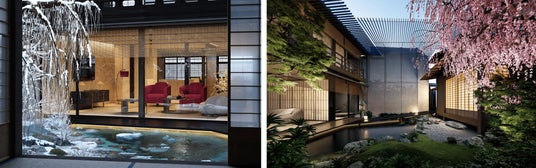 茶室においては、侘び寂びの精神性を純粋に体現する空間として構想されています。施工は、千利休の時代から続く伝統工法を継承した中村外二工務店が手がけ、日本建築の本質的価値を、現代にふさわしいかたちで蘇らせます。また、上七軒の中心にある立地を活かし、舞妓や芸妓を招いてのお茶屋遊びを楽しめる場としても機能。空間を所有することにとどまらず、京都の文化そのものに触れる体験価値を提供します。