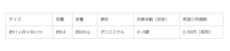 また、大きく開いて出し入れしやすいダブルジッパー式を採用。正面の上下2箇所にポケットが付き、両サイドにもオープンポケットを配して収納力抜群です。ネームタグはリュック内に付いており、お子様のプライバシーを守ります。さらにリフレクター(反射板)をショルダーストラップと正面上部ポケットにレイアウトし、お子様の安全性に配慮しました。対象年齢目安は2~5歳、希望小売価格は税別3,700円。