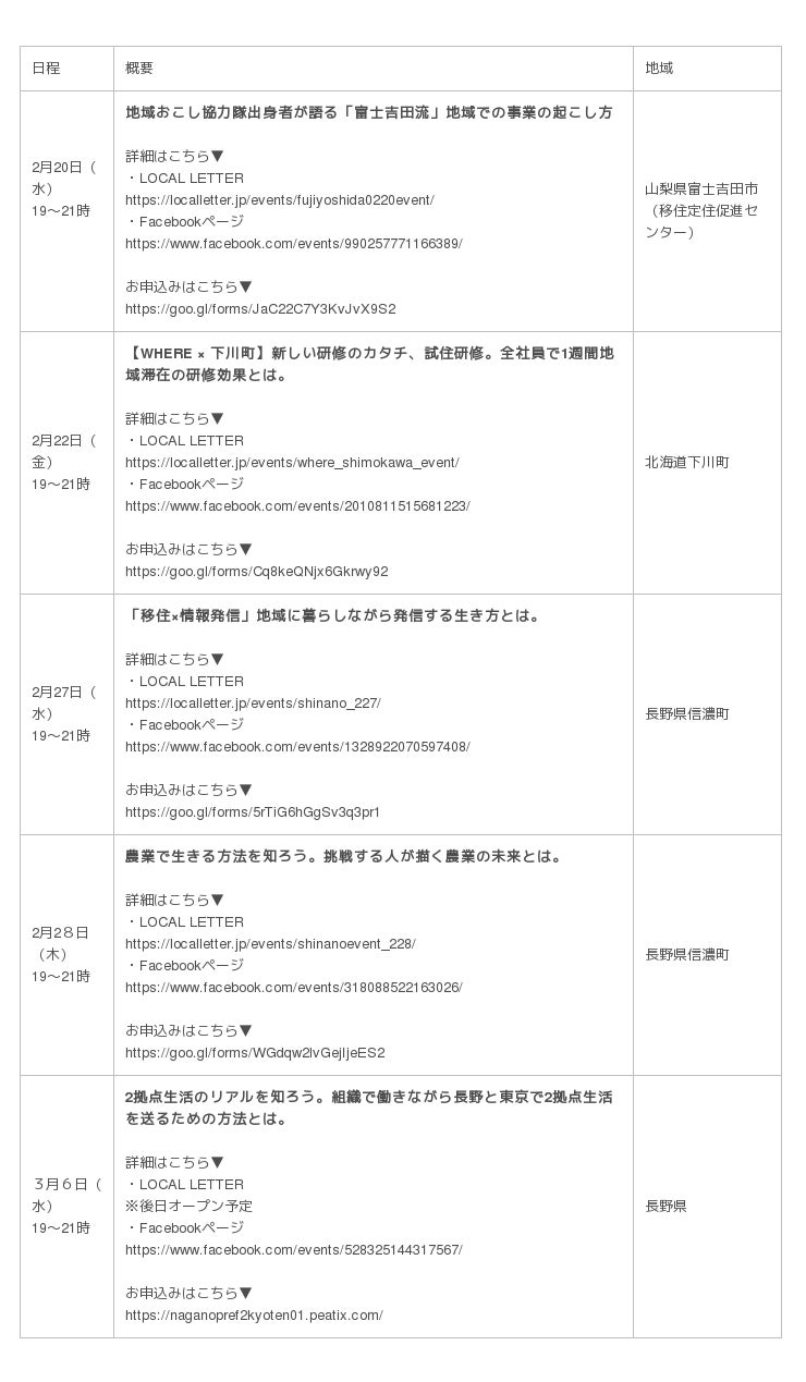 長野県、長野県信濃町、北海道下川町、山梨県富士吉田市と、関係人口創出、企業誘致、地域おこし協力隊を目的としたイベントを開催