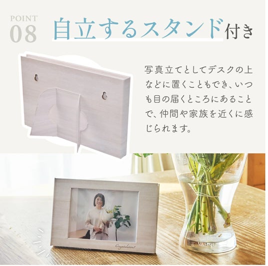 写真立てとしてデスクの上などに置くこともでき、いつも目の届くところにあることで、仲間や家族を近くに感じられます。
