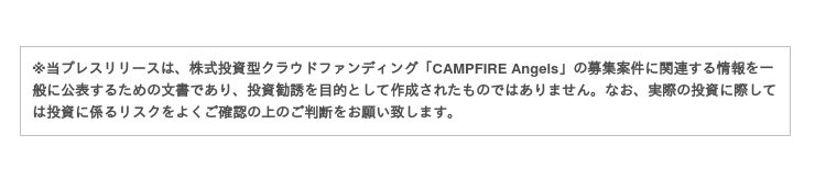 株式会社CAMPFIREの運営する購入型クラウドファンディング「CAMPFIRE」でファン顧客獲得やテストマーケティングを行うスタートアップ企業に対し、当社の運営する「CAMPFIRE Angels」はエクイティファイナンスの側面からのサポートを強化して参ります。