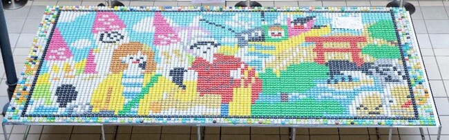 ギネス世界記録™のボトルキャップアートの制作にあたって、先行して回収したペットボトルキャップの一部を、ギネス世界記録™に挑戦するパネルのパーツとして使用いたしました。
