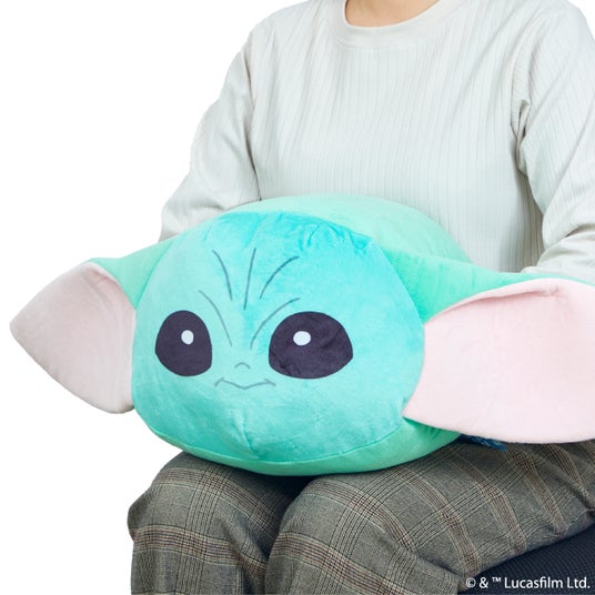 お昼寝に、リラックスタイムに…。見た目も癒されるグローグーのハンドインクッショングローグーのビッグフェイスがインパクト大の「フェイス」と、ピンク色のポッドにグローグーが乗っている「ポッド」の2パターン。