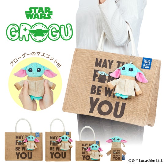 かわいい手のひらサイズのグローグーのマスコットとグローグーの衣装をモチーフにしたジュートバッグがセットに!グローグーの衣装をイメージし、自然に優しいエコ素材のジュート(麻)で作られたバッグ・巾着は、おしゃれでインテリアにもぴったり。