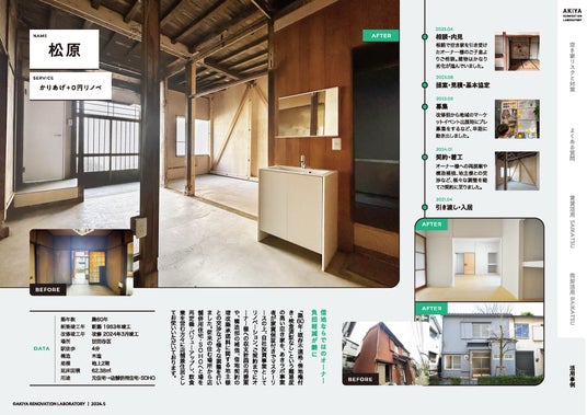 あわせて、空き家・相続不動産対策の手引きや空き家活用を検討する上でヒントになる情報をまとめた空き家オーナー向け「公式パンフレット」を作成し、公式WEBサイトよりPDF資料のダウンロード・資料請求対応を開始しました。さらに、既サービス・賃貸活用「かりあげ+0円リノベ」の無料相談を受ける窓口の強化や、空き家オーナーに代わり事業者が負担する改修資金調達の仕組み構築などサービス体制の強化を図り、また新サービス・売却活用「すみつぐ売却」を開始しました。