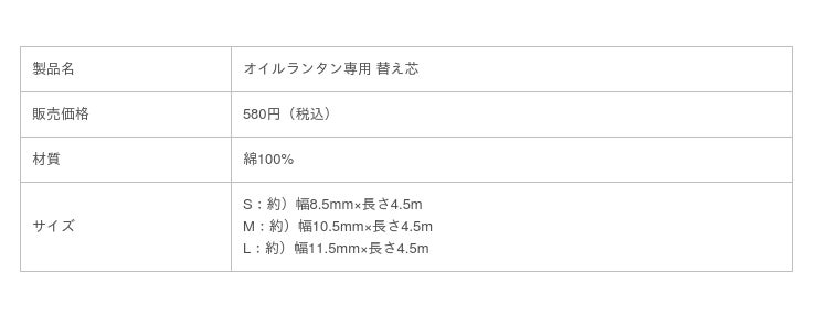 「オイルランタンを落としてしまい、ホヤが割れてしまった」、「使用を重ねることで、灯芯がなくなってしまった」などの場合に、ご購入ください。