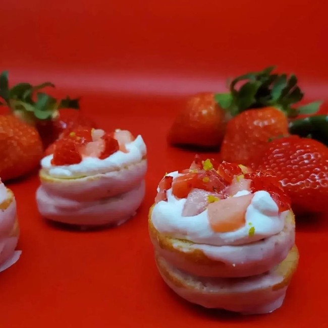 ・ROOTHオリジナルプレーンドーナツにイチゴチョコレートソースをかけ、生クリームとあまおうを乗せたショートケーキスタイルのあまおうイチゴをお楽しみいただけるドーナツです。