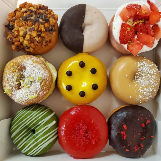 ・9 個内容:ROOTH ドーナツ・あまおうショート、ROOTHドーナツパリブレスト風、 ブラック&ホワイト、八女抹茶&ショコラブラン、 ピーナッツクリーム&キャラメルナッツ、デビルズラズベリー、マンゴー&パッション、Rロイヤルミルクティー、ビターチョコ&フレンチラズベリー。