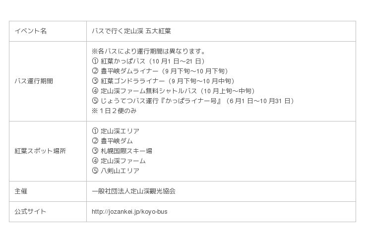 【「バスで行く定山渓 五大紅葉」 開催概要】