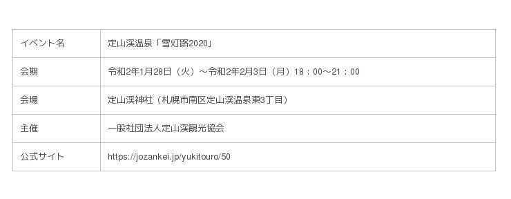【定山渓温泉「雪灯路2020」 開催概要】