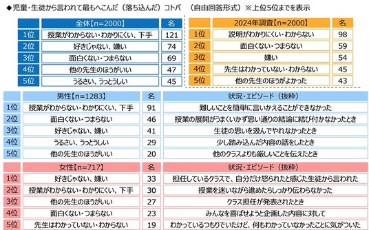 - 児童・生徒から言われて最もへこんだコトバ 1位「授業がわからない・わかりにくい、下手」