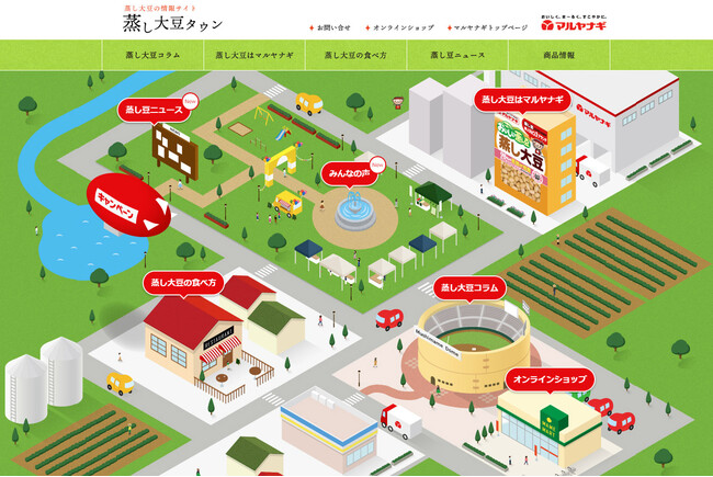 【蒸し大豆ファンページ「蒸し大豆タウン」】https://www.maruyanagi.co.jp/mushimame/