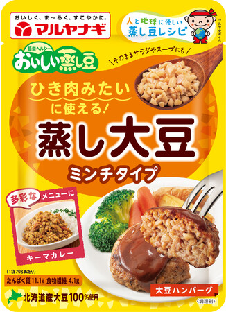 【「ひき肉みたいに使える蒸し大豆」特設ページ】 https://www.maruyanagi.co.jp/hikiniku-mushidaizu/