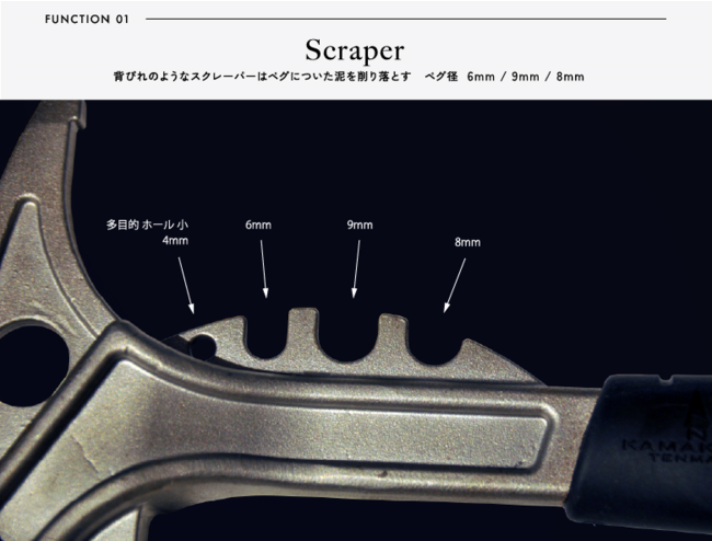 ハンマー/ペグ抜き/スクレーパー/スケール/六角レンチ/マイナスドライバー