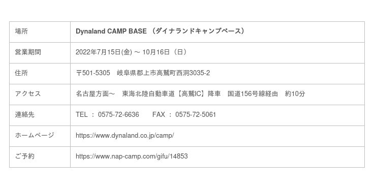 今年2022年春の開業より、多くのお客様より支持を得ている Dynaland CAMP BASE にご注目くださいませ!
