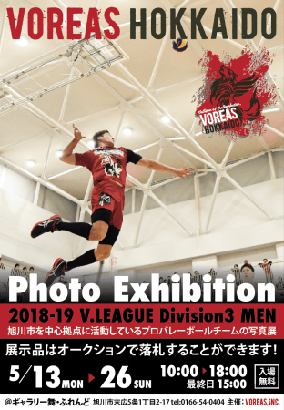 ヴォレアス北海道は2016年に誕生した日本初のプロバレーボールチームであり旭川市を中心拠点に活動している。V.LEAGUE DIVISION3において2017/18シーズン・2018-19シーズンで優勝の連覇を果たし、来シーズンからV.LEAGUE DIVISION2への昇格が決定している。チーム発足当初より地域に密着しており、地域とのコミュニケーションや連携を積極的に行なっている。5月13日(月)~26日(日)から地元の喫茶店「舞・ふれんど」(所在地:旭川市末広5条1丁目2-17)にて写真展を開催しており、選手の様々な表情を楽しむことができる。