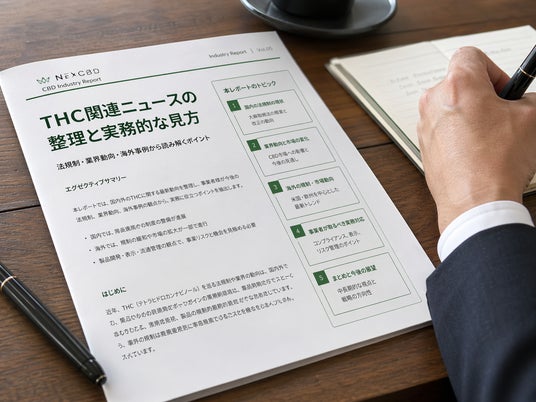 THCに関するニュース、CBN規制の議論、実際の報道内容とその受け止められ方、行政対応や現場での実務判断など、事業推進において押さえるべき論点は多岐にわたります。