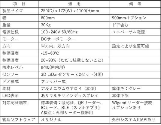 これらにより従来フラッパーゲートの設置が困難であった場所にも容易に設置が可能になります。また、小型や可搬性を生かして定置だけでなく、展示会や国際会議など臨時の使用にも活用できます。