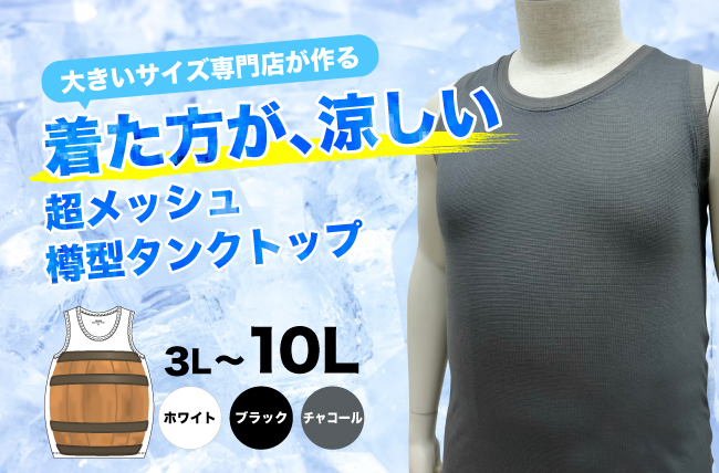 体の大きな方の夏をもっと快適に、そして夏のお悩みの解消に繋げたい!という想いから10Lサイズのタンクトップ作りをスタート。