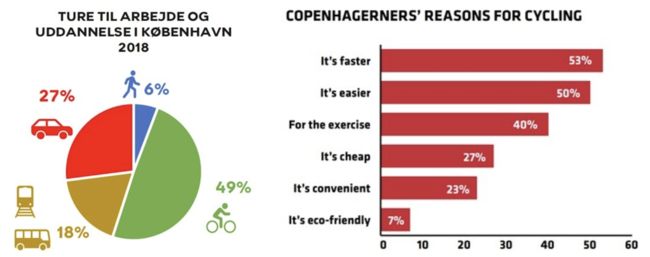 右:コペンハーゲン市民が自転車を利用する理由(2018年集計) 出典:コペンハーゲン市
