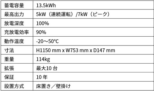 <参考:テスラ家庭用蓄電池 Powerwall 製品概要>