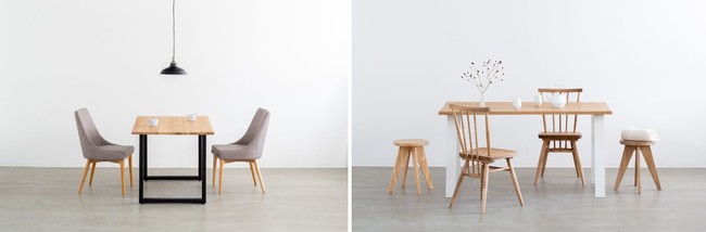 今回のオークの追加により、THE TABLEは約430通りの天板と脚の組み合わせを選ぶことができるようになり、幅広いスタイルから自分にぴったりのテーブルをお作りいただけるようになりました。