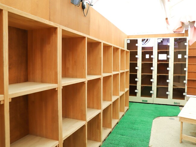 着替えスペースには、コインロッカー(コイン返却式)と温水シャワーがございます。
