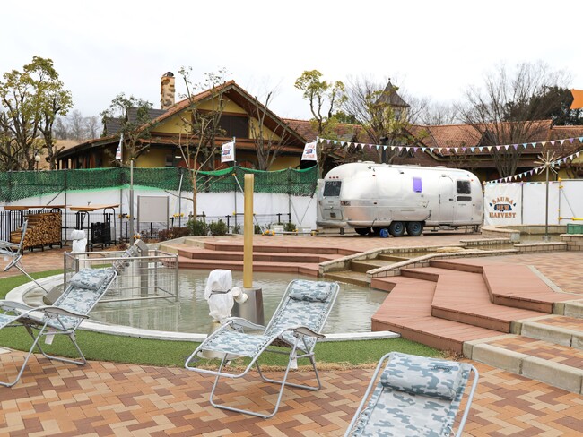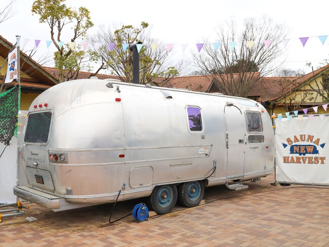 温浴施設とカフェを一体化させた「おふろカフェ」や、キャンプ場・グランピング施設でテント型モバイルサウナの設置が進むなど、サウナ施設の形態が多様化しているなか、ハーベストの丘では西日本初※、全国でも稀なキャンピングトレーラー(エアストリーム)を改造したサウナと、テント型モバイルサウナ、そして自然いっぱいの開放的なスペースで「ととのい」を体験していただけます。