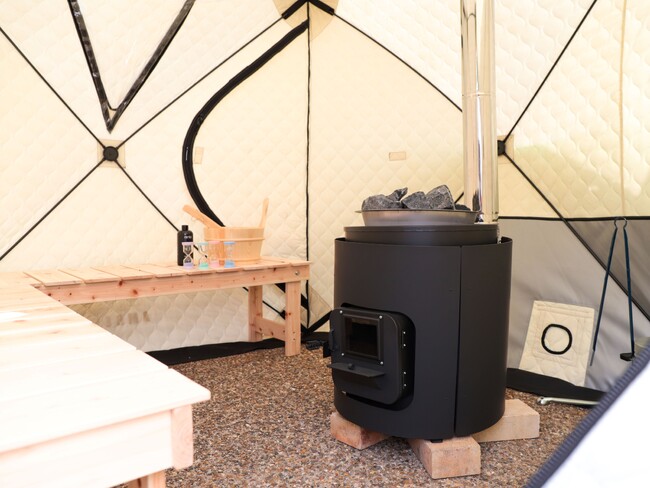 AMBER(T-WOPKS社)製のテント型プライベートサウナ。