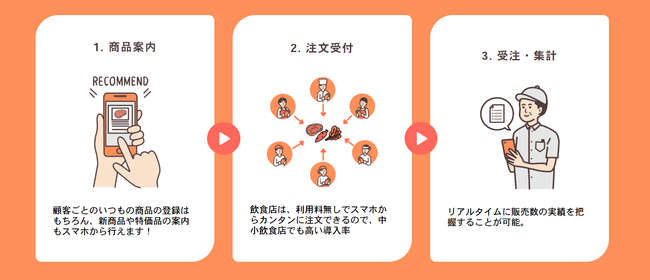 『タノム』は飲食店と食品卸売業者間の受発注をPCやスマートフォンで管理可能な、非接触営業・受発注管理システムです。