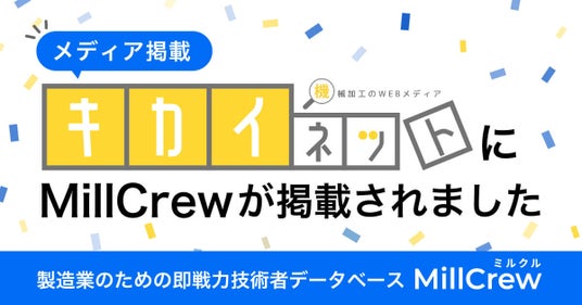 製造業に特化した即戦力技術者のスカウトサービスMillCrewが、国内上位の機械加工専門メディア「キカイネット」に掲載されました。