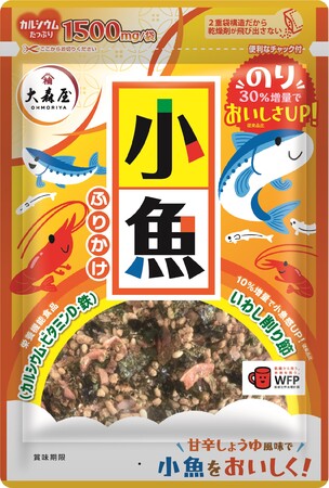 栄養機能食品が3種類(カルシウム・ビタミンD・鉄)になり、より健康感アップ!新たに味付いわし削り節を増量し、小魚感をUPしました!また、カルシウムを増量しました。(1,500mg配合/袋)