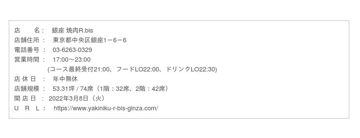 銀座 焼肉R.bis 概要