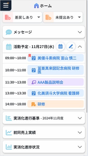 売上実績や施設・医師に関する情報、これまでの活動経緯をスマートフォンから参照できることで、面談直前の短い時間でも情報収集が可能です。