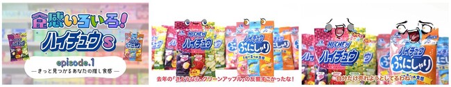 エピソード1から3に登場した「ハイチュウ」に加え、「ハイチュウミニ」と「ハイチュウ<グレープ>」も登場するエピソード4!杉田智和さん演じる「ハイチュウアソート」が、バラエティ豊かな「ハイチュウ」を紹介します!