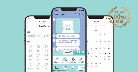 「ペアケア」は、LINEを利用した生理日予測・パートナー共有サービスです。独自のAIで生理日・排卵日を予測し、恋人や家族・友人などのパートナー共有も可能。日々の体調記録に加えて、婦人科医師監修の充実したコラムで疑問を解決することもできます。2024年3月現在、友だち登録数は69万人を突破。サービス名の『ペアケア』には、ペアケアとユーザー、ユーザーとパートナー”Pair” をケア”Care”するために生まれたサービスという想いを込めています。