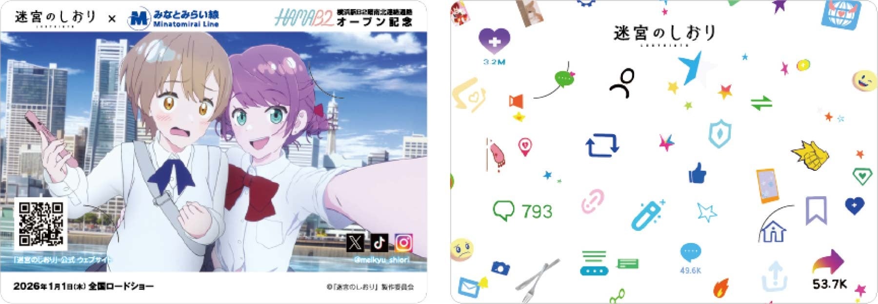 横浜高速鉄道株式会社(横浜市中区、代表取締役社長 森 秀毅)は、12月12日(金)に東横線・みなとみらい線横浜駅地下2F南北連絡通路において開業する駅のオープンスペース「HAMA B2(ハマビーツー)」の開業記念として、同イベントスペースでコラボレーションする映画『迷宮のしおり』オリジナルデザインのみなとみらい線一日乗車券を記念台紙付きで発売します。