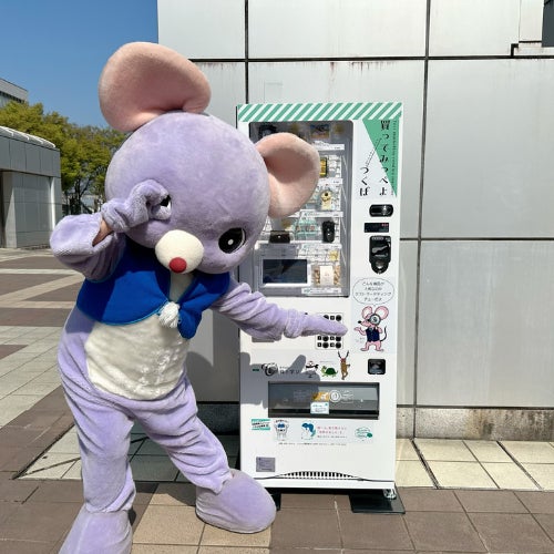 2023年4月1日 「買ってみっぺよ つくば」自販機オープニングレセプションでのねずっぺ営業部長「買ってみっぺよ つくば」は、茨城県内の中小企業の新商品のテストマーケティングを継続しつつ、今年度の新たな取り組みとして、子どもたちと地域の企業が共に作り上げる新商品の開発を支援し、誰もが参加できる場を提供します。