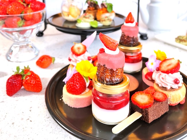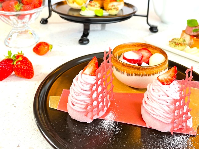 花びら舞う春のメニューは福岡の名産あまおう苺づくしです。#猫(ハッシュタグねこ)はペストリーシェフのちょっとした遊び心。お部屋だからこそ楽しんでほしいイベント付きです。