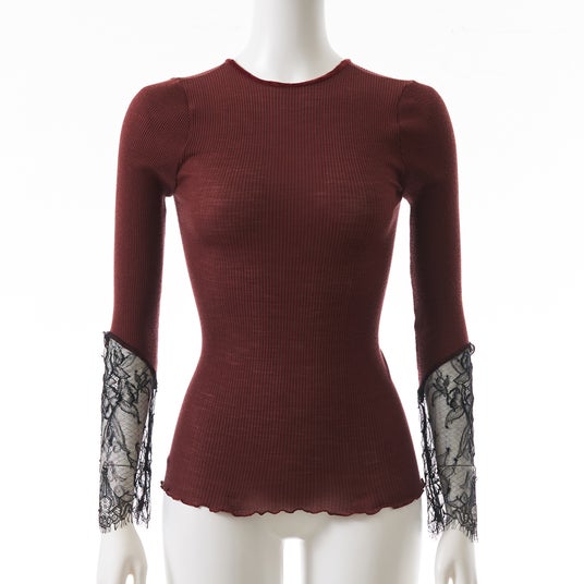 ウールアコーディオンシリーズの新色は、茶色味のある深い赤の「Maroon/マルーン」。ジャケットやトップスとのレイヤードなど、秋冬の定番スタイリングに上品さをプラスするカラーです。新作の ”袖レースロングスリーブ” は2022年秋冬に登場し、瞬く間に完売した人気アイテムがレースを変えて再登場します。カラーはブラックとマルーンの2色展開。