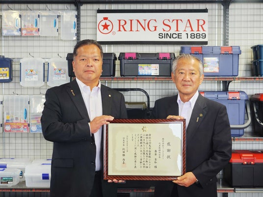 創業より137年に渡り国内自社製造の工具箱を販売する、株式会社リングスター(営業本部:奈良県生駒市、代表取締役:唐金 吉弘)は、長崎県対馬市へ漂着した海洋プラスチックごみ(オーシャンプラスチック)を、耐久消費財として使用した収納ボックスを販売するプロジェクトを開始し、対馬市に44万円を寄付いたしました。それによって2024年5月30日(木)、長崎県対馬市の比田勝尚喜市長より感謝状を賜るとともに、対馬市しまづくり推進部SDGs推進課、生駒市SDGs推進課、株式会社リングスターの三者の代表者による三者鼎談を実施いたしました。