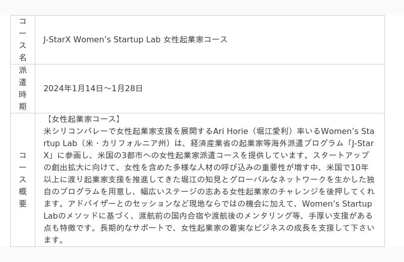 J-StarX Women’s Startup Lab 女性起業家コース運営事務局