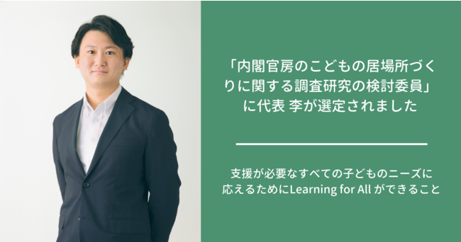 認定NPO法人Learning for All (以下、LFA)の代表理事・李炯植(り ひょんしぎ)が、2022年8月に「内閣官房のこどもの居場所づくりに関する調査研究」の検討委員に選出されました。