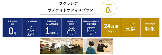 今回ご覧いただきました“フクラシア”では、オフィス利用の皆様向けのお得なご料金とサービスを備えた「サテライトオフィスプラン」のサービスを展開しております。