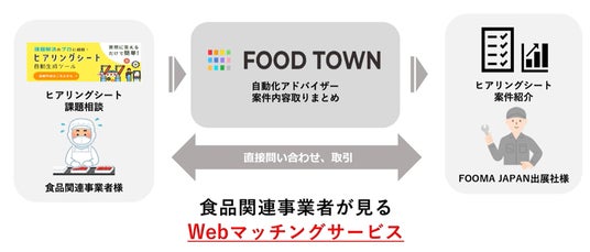 業界に特化した自動化の課題解決プラットフォーム「FOOD TOWN」。自動化アドバイザーが相談に応じ、最適な装置の提案から導入までをサポートします。WEBサイト FOOD TOWNでは、AIによる製品検索で最適製品を探すこともできます。