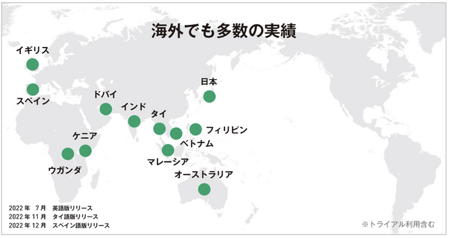利用企業数はプロダクトリリースから約2年半で10,000社を突破し、サービス提供エリアを英語圏・中東・東南アジアへと拡大し、既に10カ国以上でKANNAをご利用いただいております。